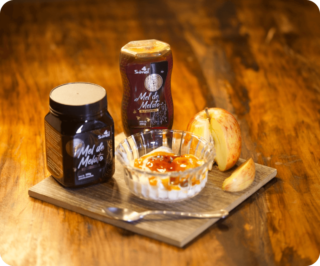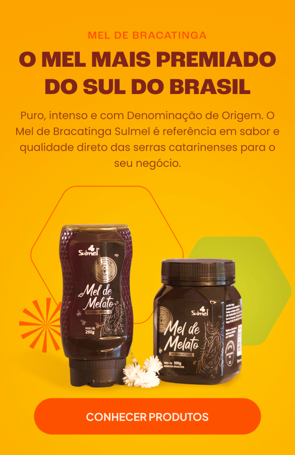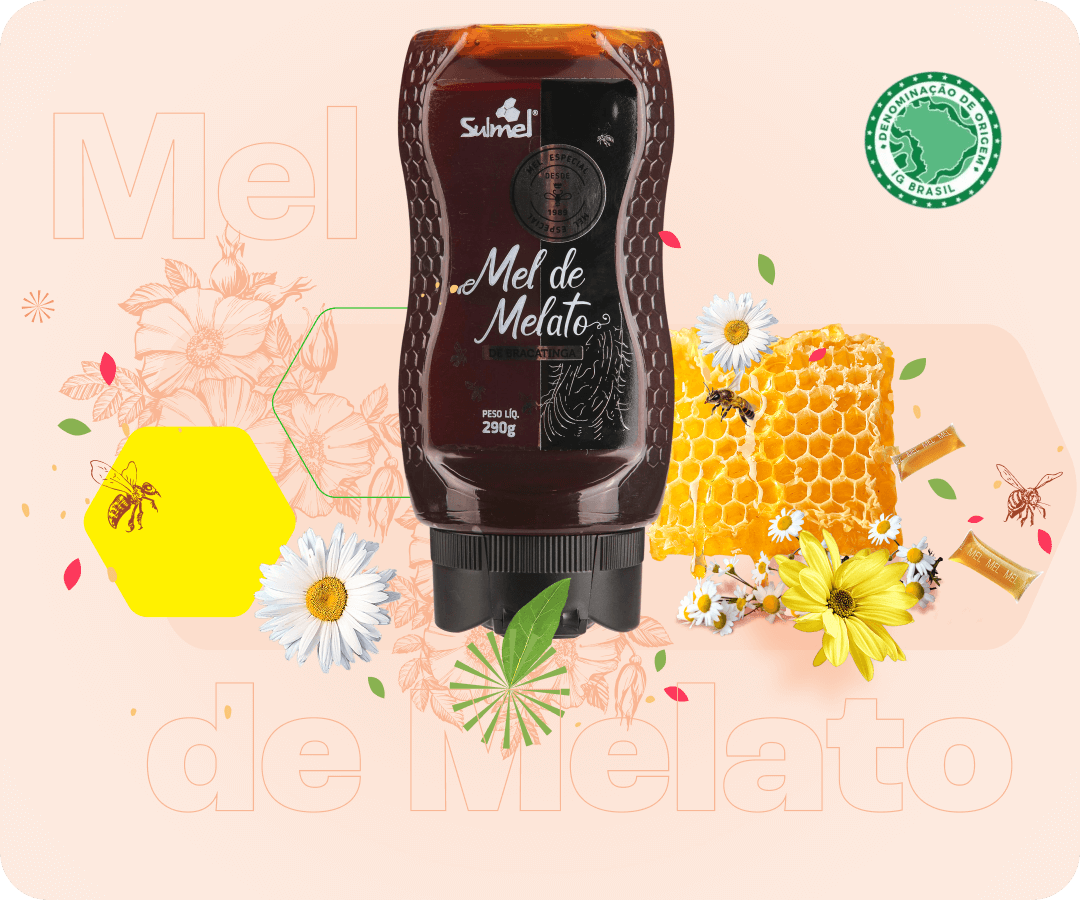 Com cor âmbar escuro e sabor marcante, o Mel de Melato de Bracatinga é considerado um dos melhores méis do mundo e é exclusivo do Sul do Brasil. Produzido a partir da interação entre a árvore Bracatinga e a cochonilha, é rico em minerais, possui propriedades únicas e conta com Denominação de Origem que garante sua autenticidade e qualidade incomparável.