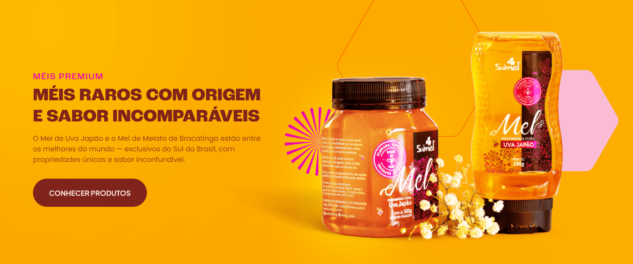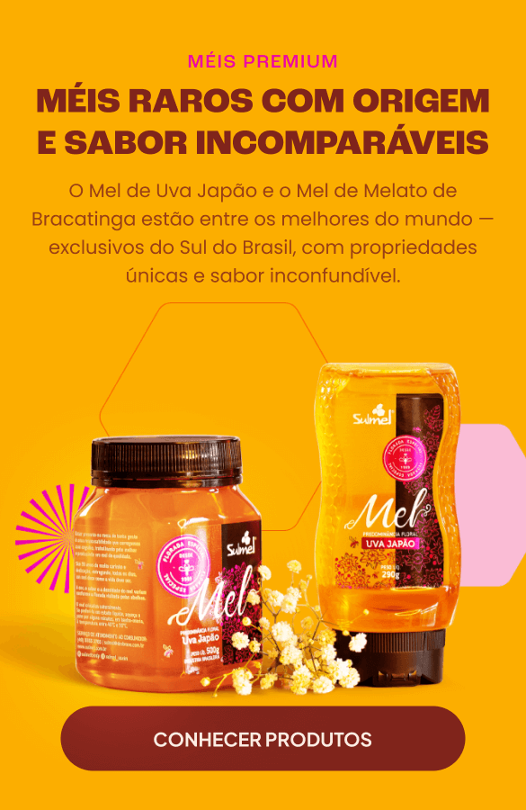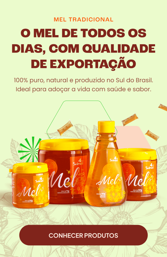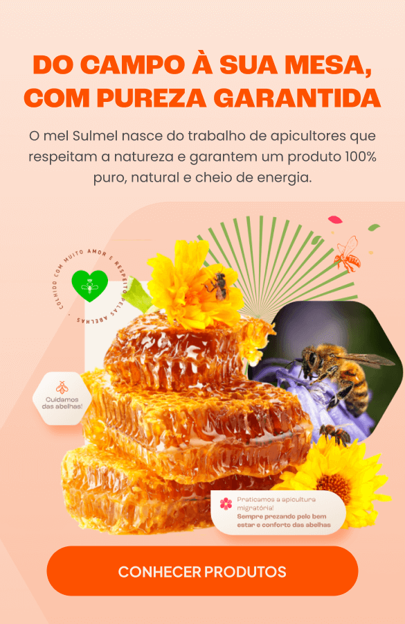 Fundada há mais de 30 anos em Xaxim (SC), a Sulmel é uma das maiores produtoras de mel puro do Brasil. Controlamos todo o processo, desde a criação das abelhas até o envase, garantindo sabor autêntico, pureza e qualidade em cada pote. Hoje, exportamos mais de 200 toneladas de mel por ano e somos reconhecidos pela excelência e pelo compromisso com o consumidor, o meio ambiente e os apicultores locais.
